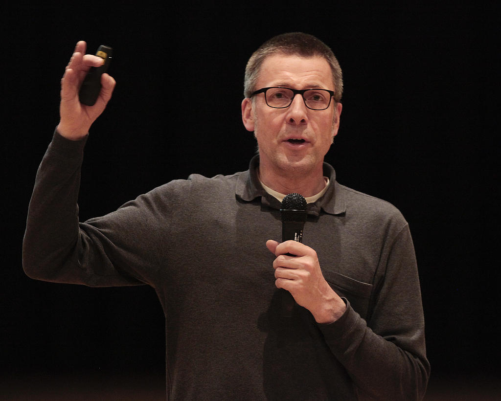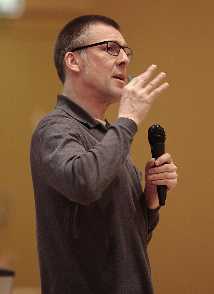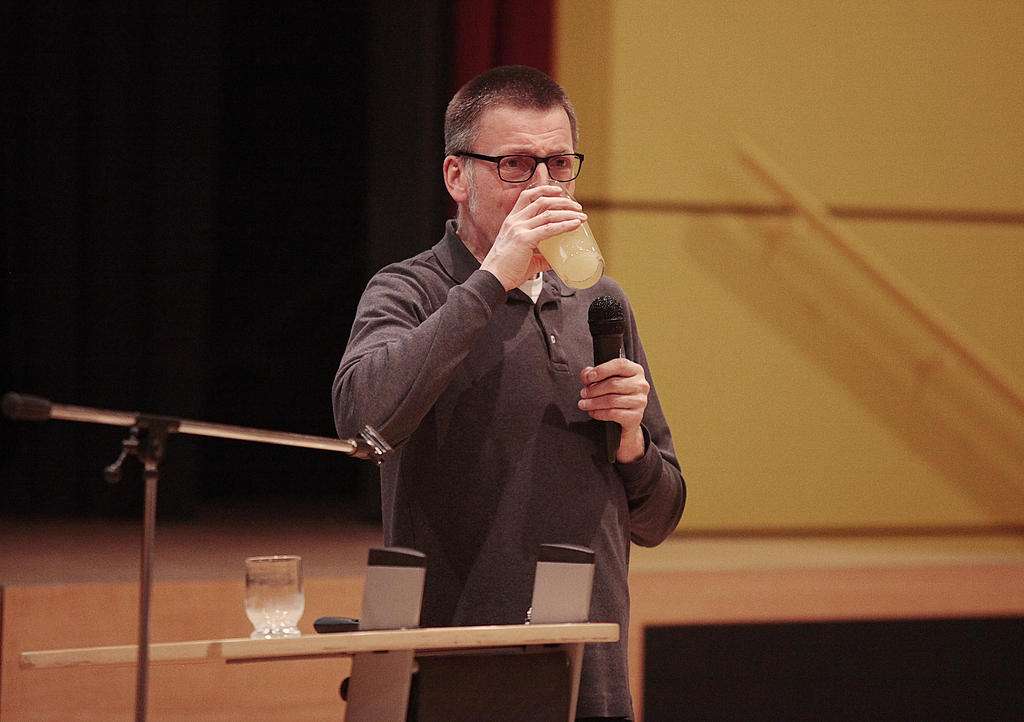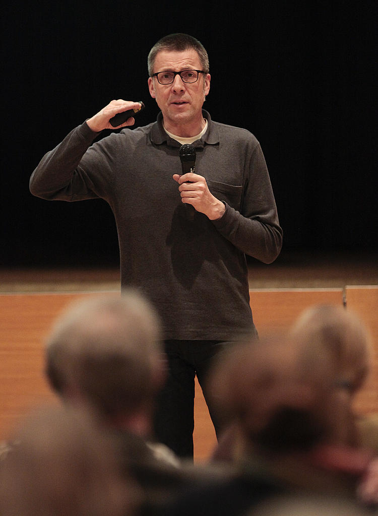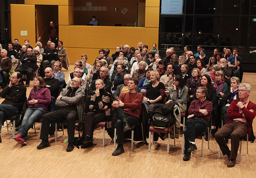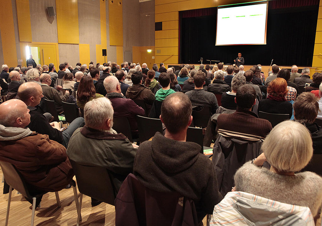 Dienstag 15. März, 19:15 Uhr, 150 Gäste und gute Stimmung im Rudi-Häussler-Saal in Stuttgart-Vahingen. Nach einer kurzen Begrüßung durch Cornelia Geeve beginnt ein gut gelaunter Niko Paech seinen Vortrag. Wie immer zieht er die Zuhörer schnell in seinen Bann.