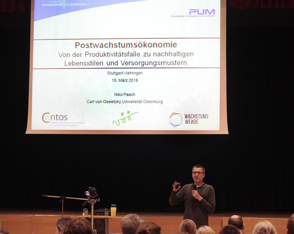 Nach der erfolgreichen 2. Runde der Vaihinger Gespräche mit spannenden Referaten von Rudolf Mehl (Christen für gerechte Wirtschaftsordnung) und Helmut Rau (Initiative für natürliche Wirtschaftsordnung – INWO e.V.). und einer regen Diskussion im Anschluss steht nun am Dienstag, den 15.03. um 19 Uhr, dieses mal im Rudi-Häussler-Saal (Schwaben Platz 3), die 3. Runde an. Zu Gast ist der Schöpfer des Begriffs Postwachstumsökonomie und Gastprofessor am Lehrstuhl für Produktion und Umwelt („PUM“) der Carl von Ossietzky Universität Oldenburg Apl. Prof. Dr. Niko Paech.